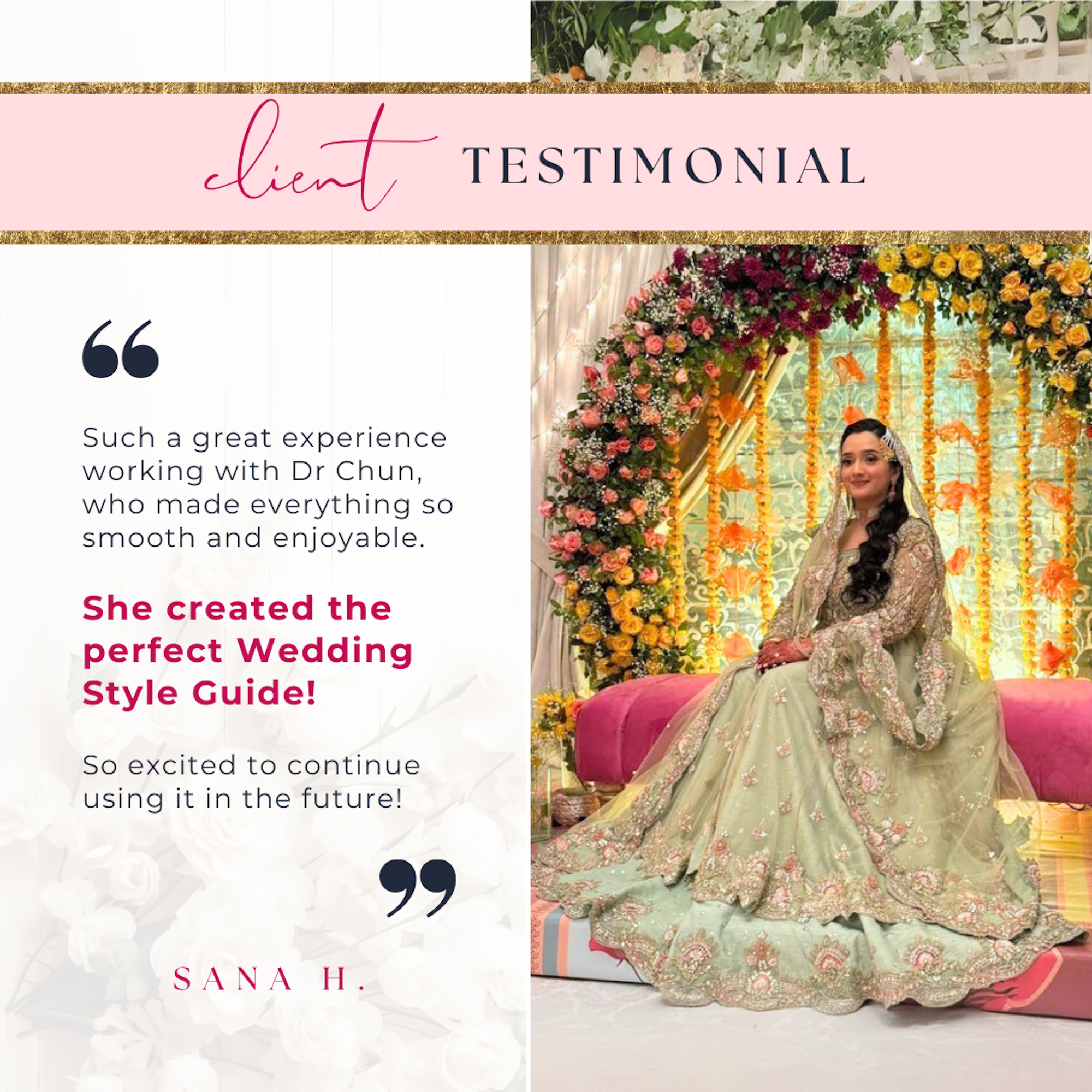 Dr. Chun was the style consultant for our wedding, and I can’t say enough about her!! The knowledge about colors, styles, and market availability that she brings to the table is on point. She was delightful to work with – a very strong support role, helpful from the starting stages to the very end, and she offered a great balance of suggestions and space to make my own decisions. I felt seen, heard and supported throughout the entire wedding planning and execution process! I feel great highly recommending her, she was such an asset to have around, and a lot of fun to boot!!